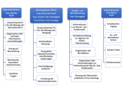- pro Jahrgang zwei Beratungslehrer*innen, die zusammen mit der Oberstufenleiterin Frau Steinke eine lückenlose Laufbahnberatung garantieren und auch bei Problemen zur Verfügung stehen