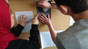 Um unsere Schüler*innen zu sensibilisieren, dass Hass und Ausgrenzung immer falsch sind, begleiteten Deutschlehrkräfte und die Courage-Gruppe den siebten Jahrgang bei der Lektüre von Tagebucheinträgen von Anne Frank und beim Verfassen eigener Einträge. So empfanden die Schüler*innen nach, wie sich das Böse angefühlt haben muss.