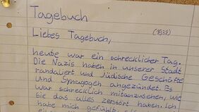 Mehrere Klassen des siebten Jahrgangs verfassten ihre Einträge zu Kapiteln aus dem Werk „Damals war es Friedrich“ von Hans-Peter Richter. Mal verfassten sie ihre Texte aus der Perspektive des Ich-Erzählers, der einfühlsam beschreibt, wie sein jüdischer Freund Friedrich unter den Repressionen der Nazis leidet. Mal schrieben sie aus der Perspektive der Figur Friedrich Gefühle und Gedanken und Fragen: Wie fühlte es sich für die Menschen an, den Hass und das Leid zu erfahren, warum tun Menschen so schlimme Dinge? Wie konnte es zum Pogrom kommen?