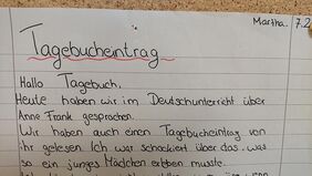 Zum Anne-Frank-Tag 2023stand die Beschäftigung mit Tagebucheinträgen auf dem Lehrplan des Deutschunterrichts im siebten Jahrgang unserer GHS. Begleitend zur Lektüre von Jugendromanen mit Bezug zum Nationalsozialismus verfassten die Schüler*innen Tagebucheinträge aus der Perspektive der Figuren in den Büchern. Sie versetzten sich in die Rolle und Lage der Figuren, versuchten aus ihrer Perspektive Gedanken und Wünsche, Hoffnungen und Ängste und Fragen zu formulieren. So tauchten die Schüler*innen tiefer ein in die Werke und reflektierten intensiv, wie das Leben im Nationalsozialismus gewesen sein könnte.