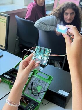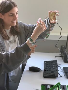 Nach einer kurzen Einführung in das vielseitige Themenfeld der Geoinformatik ging es direkt ans Werk: Mit Open-Source-Elektronik und Umweltsensoren wurden eigene Messstationen aufgebaut. Die Teilnehmenden programmierten erste Anwendungen und sammelten selbstständig Umweltdaten – etwa zur Luftqualität oder Temperatur. So wurde nicht nur technisches Know-how vermittelt, sondern auch ein tieferes Verständnis für Umweltprozesse gefördert. Dabei gingen die Schüler*innen motiviert und mit viel Kreativität ans Werk. So wurde zum Beispiel über Temperatursensoren ein Display programmiert, dass bei entsprechend hohen Temperaturen dazu aufruft hitzefrei anzuordnen. Das Gelernte soll nun im Rahmen des Kurses für eigene kleine Projekte genutzt werden. Wir können gespannt sein, was sich die Schülerschaft noch so alles ausdenkt.