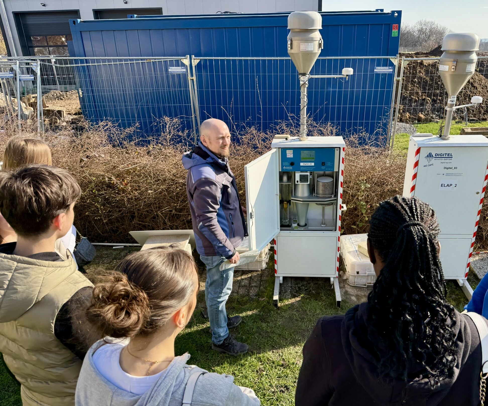 Zum Auftakt stellte das LANUV vor, wie Luftschadstoffe gemessen, bewertet und für den Umweltschutz nutzbar gemacht werden. Beim Rundgang durch Labor und Messcontainer sah die Gruppe moderne Analysegeräte in Aktion und erfuhr, wie Feinstaub, Stickoxide und Ozon erfasst werden. Die Jugendlichen konnten direkt mit Fachleuten ins Gespräch kommen und Fragen zu aktuellen Umweltproblemen stellen.