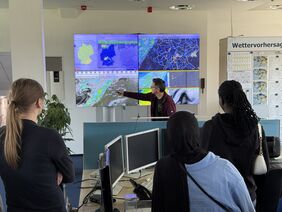 Zum Ende des Besuchs führte der Weg in die Vorhersagezentrale. Dort erfuhren die Schülerinnen und Schüler, wie aus Millionen Messwerten präzise Wetterprognosen entstehen und welche Rolle moderne Computertechnik dabei spielt.